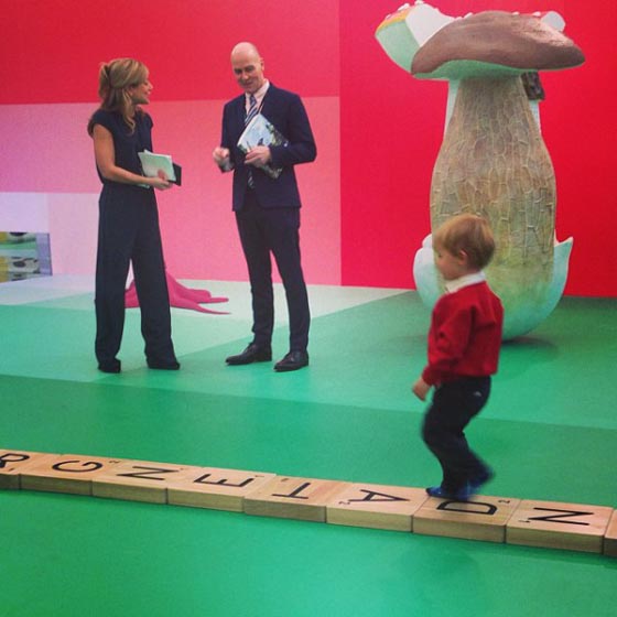 Gagosian devoted its whole booth at Frieze Art Fair in London to the artist Carsten Höller’s “Gartenkinder,” which is a actually giant playground. Höller uses his training as a scientist in his work as an artist, concentrating on the nature of human relationships. His New Museum show last year incorporated a merry-go-round and a slide installed through the floor of the gallery. Well, of course this installation looks fun and because it’s a playground, kids LOVE IT. They are allowed to play with giant Scrabble pieces and bouncy balls climb inside the dice and they look pretty cute doing it. This is interactive sculpture but to save $$, you could just install a see-saw inside your loft.