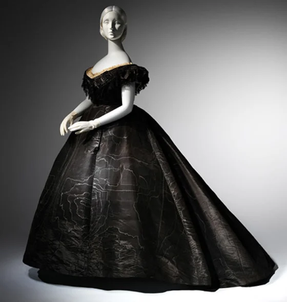 Featured in the show is the dress worn by Queen Victoria to mourn Prince Albert I. She worn mourning clothes for the rest of her life, btw. THAT is love – and fashion – and tradition, all rolled into one royal.