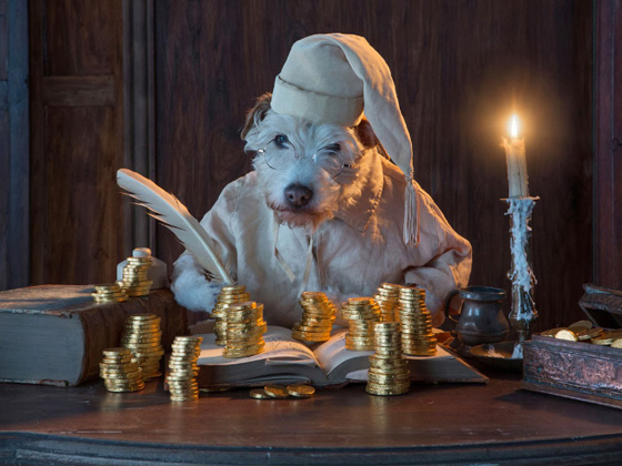 Christmas is done for another year –and for the first time in a long while British photographer Peter Thorpe isn’t cooking up a new idea for his dog, Raggle. Every holiday season –from Scrooge, to a wintery robin and most recently a mouse with a taste for Christmas dessert– he has transformed her into a all sorts of characters and Raggle has been the perfect model;
