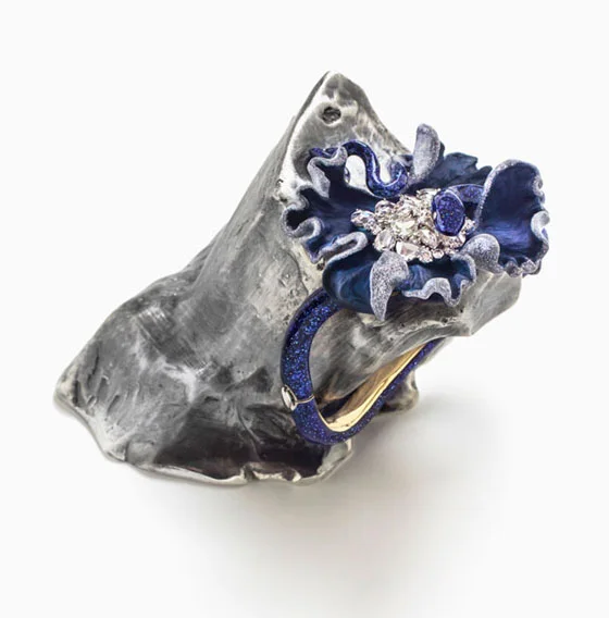 My jewels are propositions. From the outset, this involves making an object that constructs itself out of many different things, and that sometimes ends up surpassing even what I had imagined for it. It is no longer primarily an accessory; it becomes something larger. It speaks about concept and form as opposed to objective value. It becomes sculpture. –Victoire de Castellane
