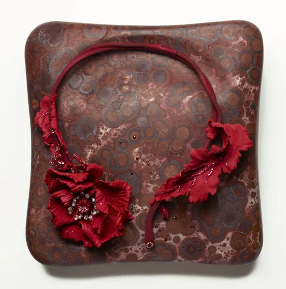 Opiom Velourosa Purpra, 2010, Lacquered silver, white gold, rubies, diamonds, rhyolite, with base: 5 x 8 3/4 x 8 1/2