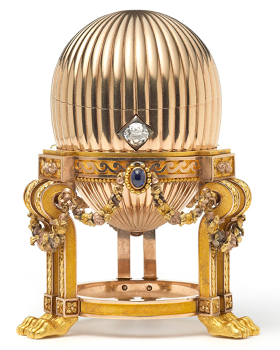 The Third Imperial Fabergé Easter Egg displayed among Marie Feodorovna's Fabergé treasures in