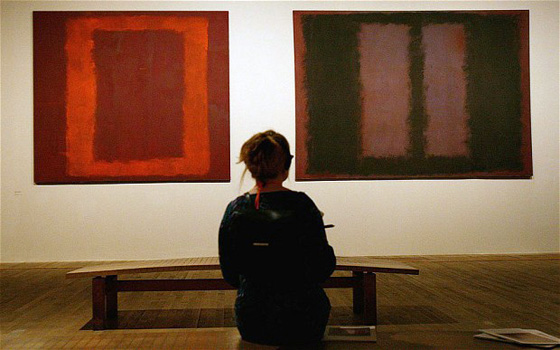 The Seagrams Murals by Mark Rothko are probably the MOST opposite you can get from Matisse’s joyful cut-outs. I got to see the fantastic play Red on Broadway several years ago, which tells the story of Rothko’s commission by The Four Seasons restaurant in New York. He was paid something like $300,000 in the late 50s (a FORTUNE, at the time) to create a series of paintings to be hung in the restaurant permanently. He decided that he hated his work ending up in some corporate restaurant for rich people, gave the money back and kept the work. These paintings are on view now in their own gallery, which like the paintings in Rothko Chapel in Houston (where I’m from) are literally a religious experience. It’s terrible to say again that you haven’t seen them until you look at them in person, but it is DOUBLEY true in this instance. If you stand at the right distance from the center of any given painting, you can get lost and fall into them. It’s probably been said before, but to me, he was painting the void over and over again up until the end. And he eventually went INTO that void by his own hand, committing suicide. I never thought of it until now but maybe by painting that void he willed himself into it (like standing on the edge of a roof seems to pull you to the ground). As the mystics say, “You combine with what you vibrate to.” I love looking at them and contemplating the infinite, but I’m staying on this side for now. There’s too much to do…