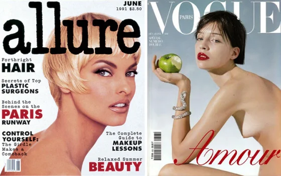 A Lucy Sisman Allure cover, ’92 and a ’99 cover from Joan Buck’s tenure as editor-in-chief of Paris Vogue