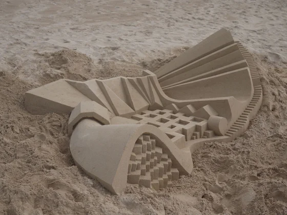 Growing up in Colorado, Calvin Seibert spent a lot of time at construction sites. Back then, he was thousands of miles away from an ocean, but that didn’t stop him from building castles out of the massive mounds of sand. I first met him YEARS ago (we’re talking 80s) when he was assisting my friend, artist Rodney Alan Greenblat. We recently reconnected and I found out among other things, he’s been making these amazingly sandy complexes. His castles are not so much sand castles as they are brutalist structures of his architectural inspirations like Paul Rudolph, Gottfried Bohm and Giovanni Michelucci.