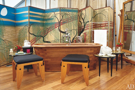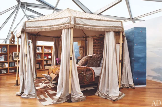 Von Furstenberg hired Amale Andraos and Dan Wood, of the architecture firm WORKac —to connect two 19th century redbrick buildings. The gap between the buildings is now a concrete staircase that goes from the lobby floor to her private rooftop lair with a live/work space and on top, a 900-square-foot master suite with a terrace. THE perfect New York apartment, perched on top of the business she built from a single wrap dress. And if that’s not enough, in a garage downstairs sits a Bentley – I’ve seen the garage door open with her driver waiting for the lady upstairs. For more photos, go here.