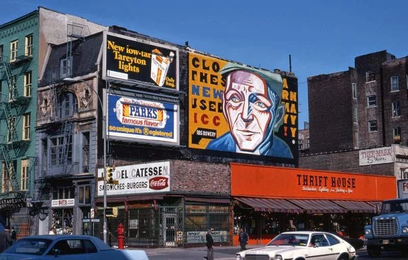 Northeast corner of Delancey and Bowery, c.1978. Photo by Manel Armengol