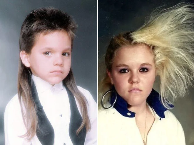 I guess we’ve all had questionable hair-dos, or rather hair-don’ts, but these are really world-class awful. How they get started, I have NO idea? I guess these parents own mirrors and magazines…? Maybe everyone in their town goes to the same stylist and they all tell each other they look great? Anyway, you’re welcome?