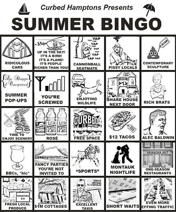 If you’re not familiar with the ins and outs, trial and tribulations of dealing with one of the most buzzed about summer destination –it won’t matter at all. You can “relax” by playing the Hamptons‘ newest game, Summer Bingo, which is fun (?) and according to Curbed…