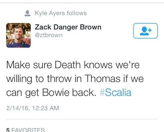 “Make sure Death knows we’re willing to throw in [Justice Clarence] Thomas if we can get Bowie back.”