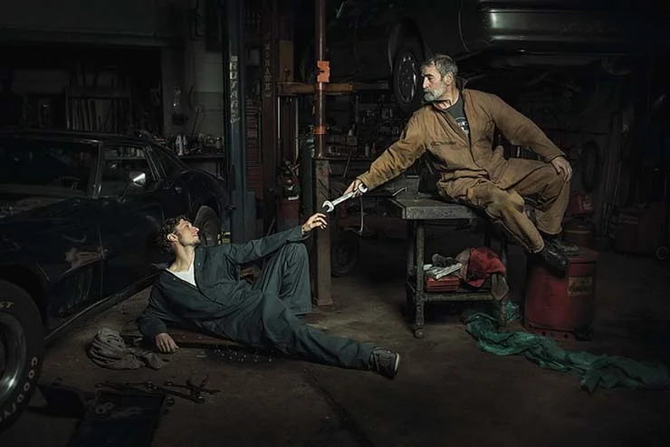 Photographer Freddy Fabris created these updated versions of famous Renaissance paintings after the idea came to him during a visit to a garage. He perfectly represents the distinctive style of great Renaissance master painters like Rembrandt & Leonardo daVinci in these reverent recreations. Talk about Renaissance men...
