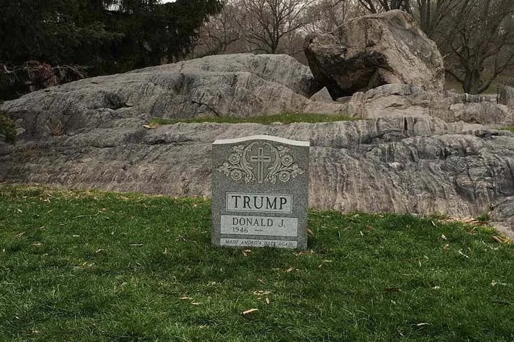 If you remember back in March, a tombstone with Donald Trump's name and the words,