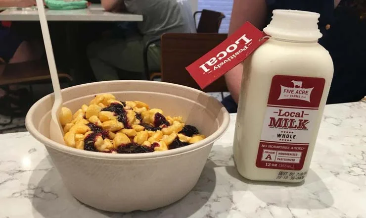 How about Special K served with Frosted Flakes, pistachios, lemon zest and thyme? Rice Krispies with green tea powder and fresh strawberries? Of course there are milk options. Customers can choose between whole milk, skim milk, soy milk, plain yogurt and even soft-serve ice cream!
