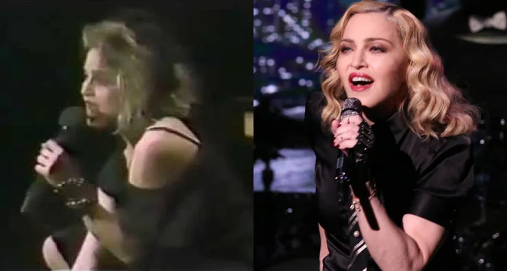 Madonna‘s worldwide Rebel Heart tour is over now. As Jimmy Fallon says in this clip from The Tonight Show, it grossed $190 million. Thirty-two years prior, a baby-faced Madge was already on her way to being on of the most successful recording artists in history. Here she is performing Borderline in 1984 and again in 2016.