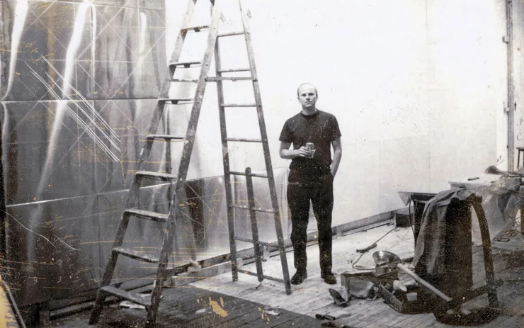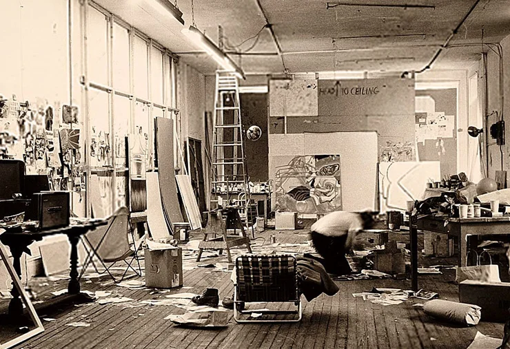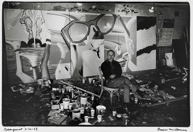 Rosenquist in his studio at 3–5 Coenties Slip. Photo, Fred W. McDarrah, March 30, 1963