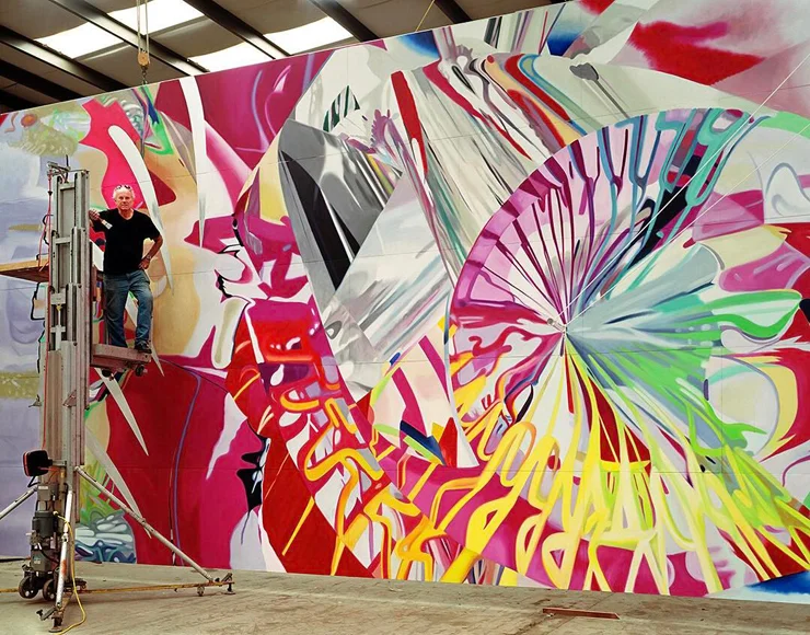 “I truly loved James Rosenquist. Even though he was one of the mythic giants of Pop Art, he was so damned human, so down to earth, never any airs, just the ever present glinting chuckle of someone continually taking delight as the world unfolded around him. I knew Jim first because he was the only major art historical figure who regularly schlepped his own art supplies from Pearl Paint. No assistant there for that, he worked prodigiously so he was always needing to restock and was a regular figure there, carting bags of brushes and paint tubes up and down the steep tenement stairs. Always friendly and approachable, we first struck up a conversation on the first floor, the industrial, non art part of Pearl. He was laughing and joking around with old Aaron who had been there forever, trying to get him to ditch work with him, buy a bottle of whiskey, put a baby nipple on it and spend the rest of the glorious afternoon passing it back and forth on the grimy sidewalk on the backside of the store. And I was invited.